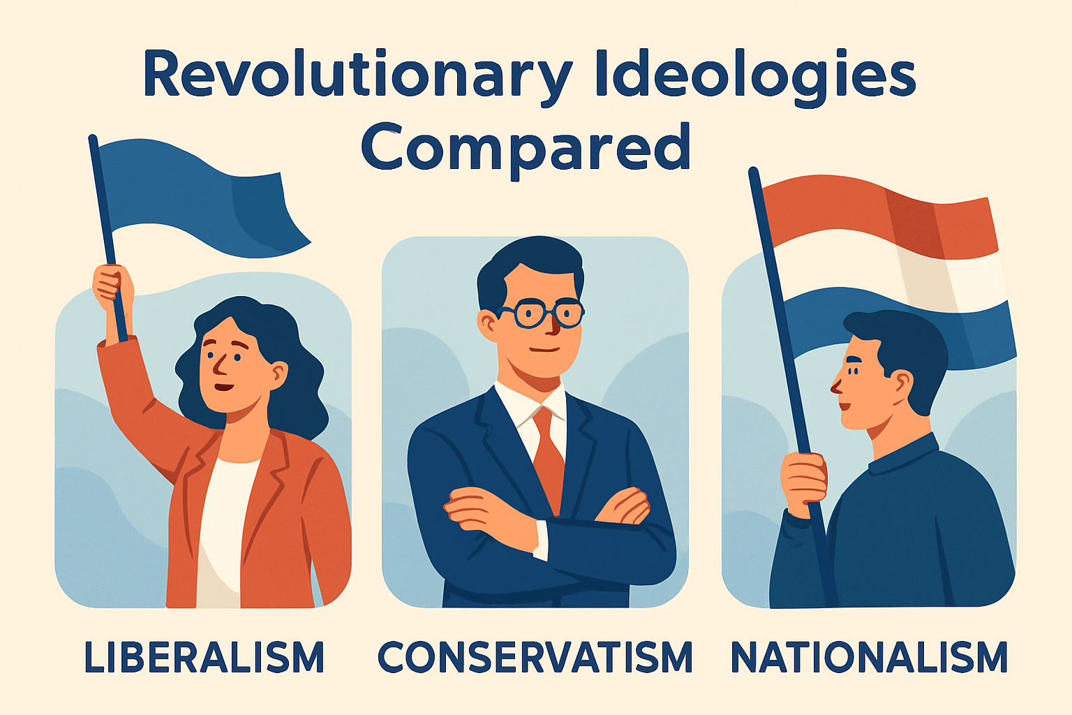Revolutionary ideologies reshaped the modern world by redefining power, rights, and political belonging. Liberalism, conservatism, and nationalism emerged most forcefully during the age of Atlantic revolutions and the political upheavals that followed the French Revolution. Each offered a distinct answer to urgent questions that I repeatedly encounter when teaching modern history: Who should govern, what should be preserved, and why do people owe loyalty to a state? Understanding these ideologies matters because they still influence elections, constitutions, foreign policy, civic identity, and public debate across democracies and authoritarian systems alike. Liberalism prioritizes individual liberty, constitutional government, and legal equality. Conservatism emphasizes order, continuity, religion or inherited institutions, and gradual reform. Nationalism argues that people sharing a common identity, history, language, or culture should have political self-determination. These traditions often overlap in practice, but their assumptions differ in ways that explain centuries of conflict and cooperation.